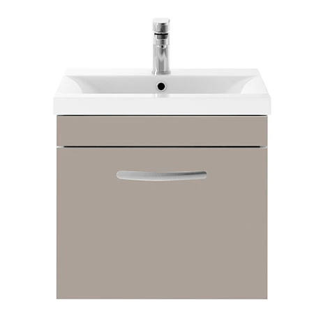 The Brooklyn Stone Grey modular furniture range combines up to date looks with practical storage. Features a soft close drawer which provides plenty of storage space for toiletries, the Brooklyn wall hung vanity unit is perfect for adding modern style to any bathroom. This high quality stone grey vanity unit is supplied with a smooth gloss white vitreous china basin. All units are provided with quality matt chrome handle.Â