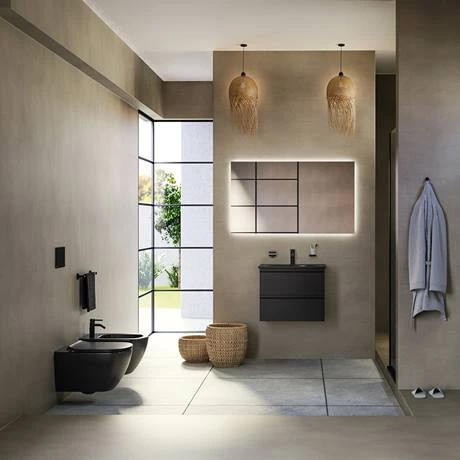 Balance is everything with the Tesi 600mm 2-Drawer Wall Hung Vanity Unit. From the slender curves of the furniture to the flexibility of the fittings, it’s effortlessly designed, giving you precision that can work in everything from family bathrooms and en-suites to cloakrooms and smaller spaces. The unit features 2 adjustable drawers with soft closing system and built-in handles. The silk black finish makes for a sleek, premium look, while bringing elegance.