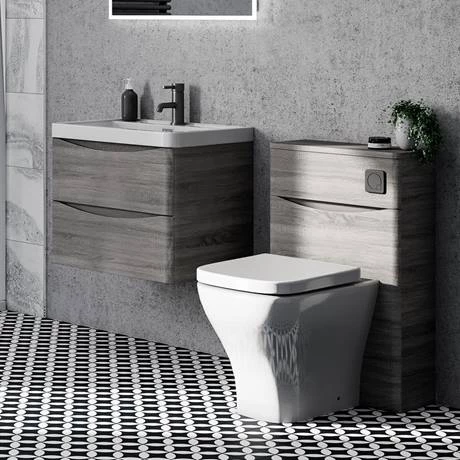 A minimalist design combines with maximum storage in the Monza Graphite Oak Vanity Unit. This 600mm wide, wall hung vanity unit has two generously proportioned soft closing drawers for storing your bathroom essentials. It’s wall hung design will free up floor space giving the illusion of a bigger bathroom and the rounded corners on the drawers and the basin, help to create a stunning focal point and work to elevate the style of your space. If you love this Graphite Oak vanity unit, you might appreciate the matching Graphite Oak Monza Tall Storage Unit for even more cupboard space. Â