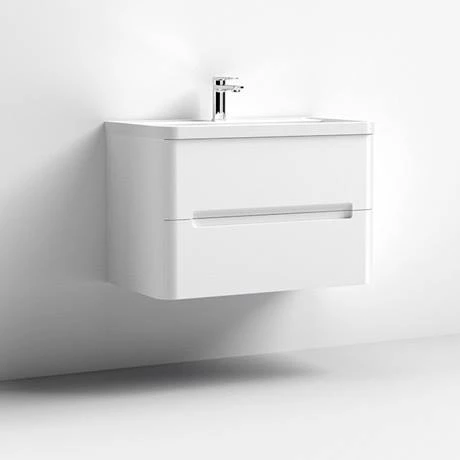 (1) Elbe Satin White 800mm Wall Hung 2-Drawer Vanity Unit – PAR195