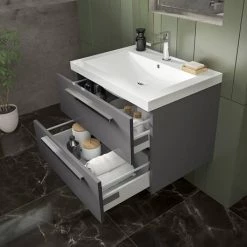 Hudson Reed 600mm Grey Avola Full Depth Wall Hung 2-Drawer Unit & Basin