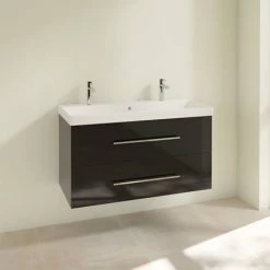 Villeroy and Boch Avento Crystal Black 1000mm Wall Hung 2-Drawer Double Vanity Unit