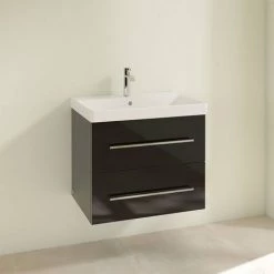 Villeroy and Boch Avento Crystal Black 650mm Wall Hung 2-Drawer Vanity Unit