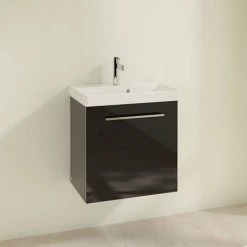 Villeroy and Boch Avento Crystal Black 550mm Wall Hung 1-Door Vanity Unit