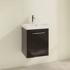 Villeroy and Boch Avento Crystal Black 450mm Wall Hung 1-Door Vanity Unit