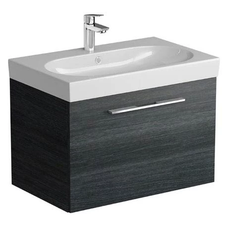 The beautifully sculpted Angelo furniture range has clean, crisp lines that will add a modern touch to any bathroom. This wall hung washbasin unit features a soft closing drawer for a smooth and quiet closure and a waste cut-out which allows easy access to all your bathroom toiletries. The clean white basin complements the unit beautifully and is supplied with a single tap hole.